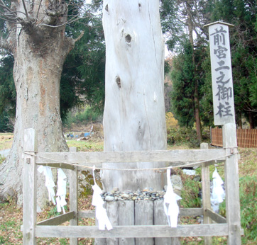 諏訪の神社って諏訪大社以外でもだいたい御柱が4つ立ってるのね。